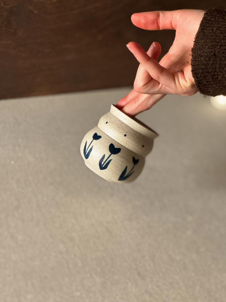 Made with stoneware clay and finished with a matte transparent glaze that gently reveals the floral design beneath.