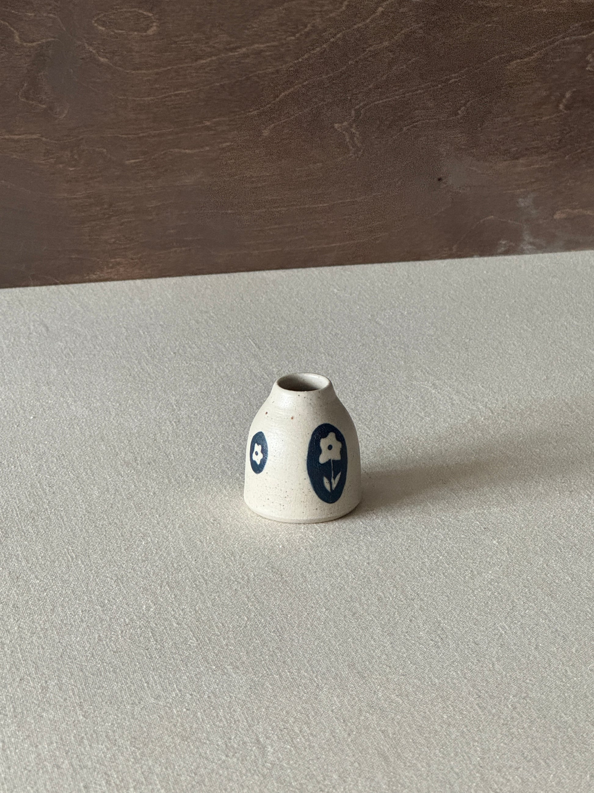 This hand-thrown mini vases features delicate hand painted floral detailing.